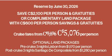 Conditions apply. Valid on travel booked through Uniglobe Travel. All advertised prices include or disclose taxes & fees. Prices and offers are valid for new bookings only. Air only prices are per person for return travel in economy class unless otherwise stated. Package, cruise, tour, rail and hotel prices are per person, based on double occupancy for total length of stay unless otherwise stated, and are applicable for the departure date listed at the advertising deadline. Pricing that includes airfare is valid only for the departure gateway listed. Airport transfers to/from the hotel may not be included and are supplier and destination specific. Some packaged travel products for certain destinations may include flight connections at an additional cost ($). Taxes & fees due during travel or in destination are additional and may include, but not limited to, local car rental charges & taxes, one-way car rental drop fees which are to be paid upon arrival, resort fees & charges, tour ‘kitty’ or local payment, airline baggage fees, departure taxes, and cruise gratuities. Prices are for select departure dates and are accurate and subject to availability at advertising deadline, errors and omissions excepted, and subject to change without notice by the supplier. Advertising deadline: April 8, 2026. For full terms & conditions please speak with a Uniglobe Travel consultant.