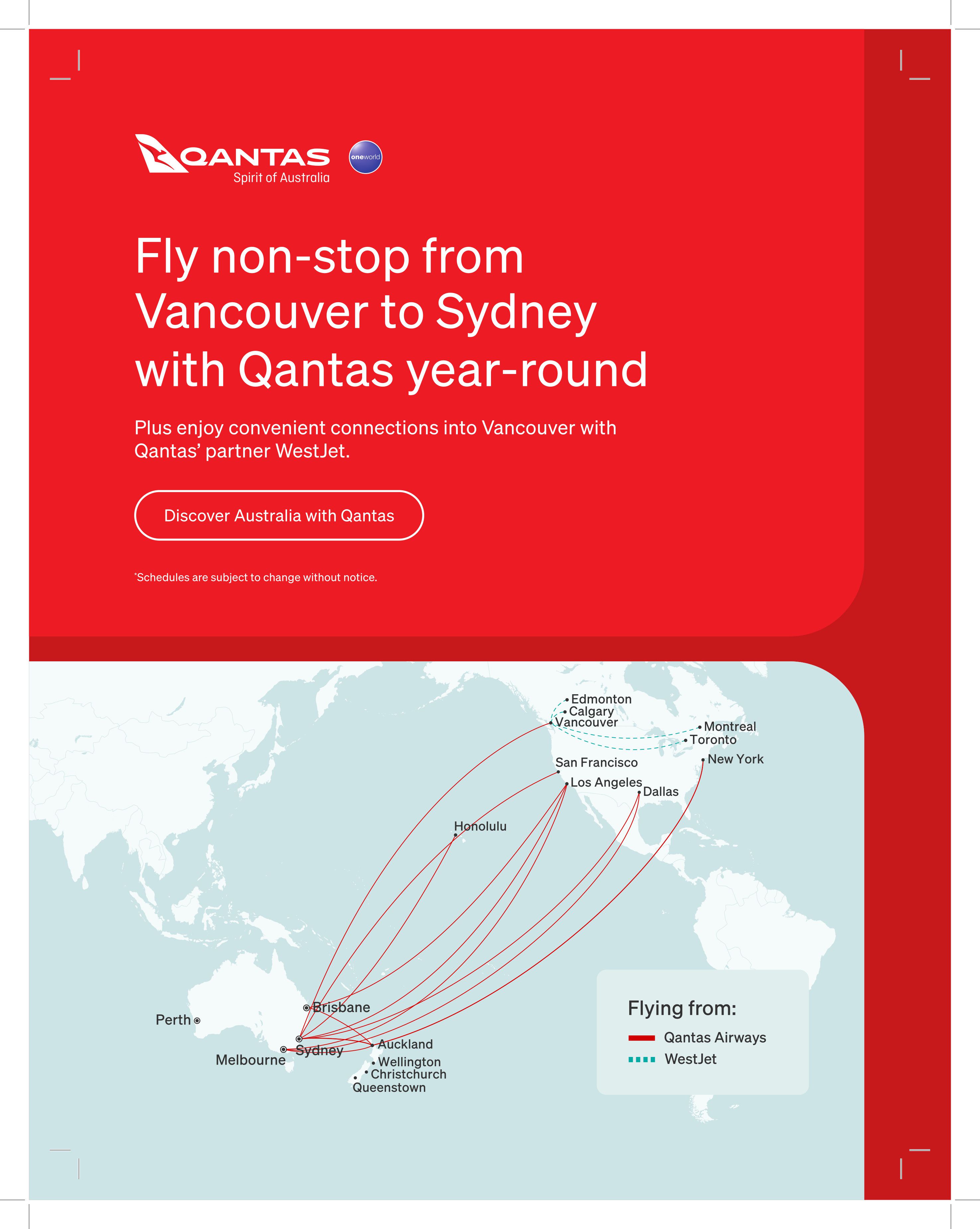 "Fly Non-Stop from Vancouver to Sydney"