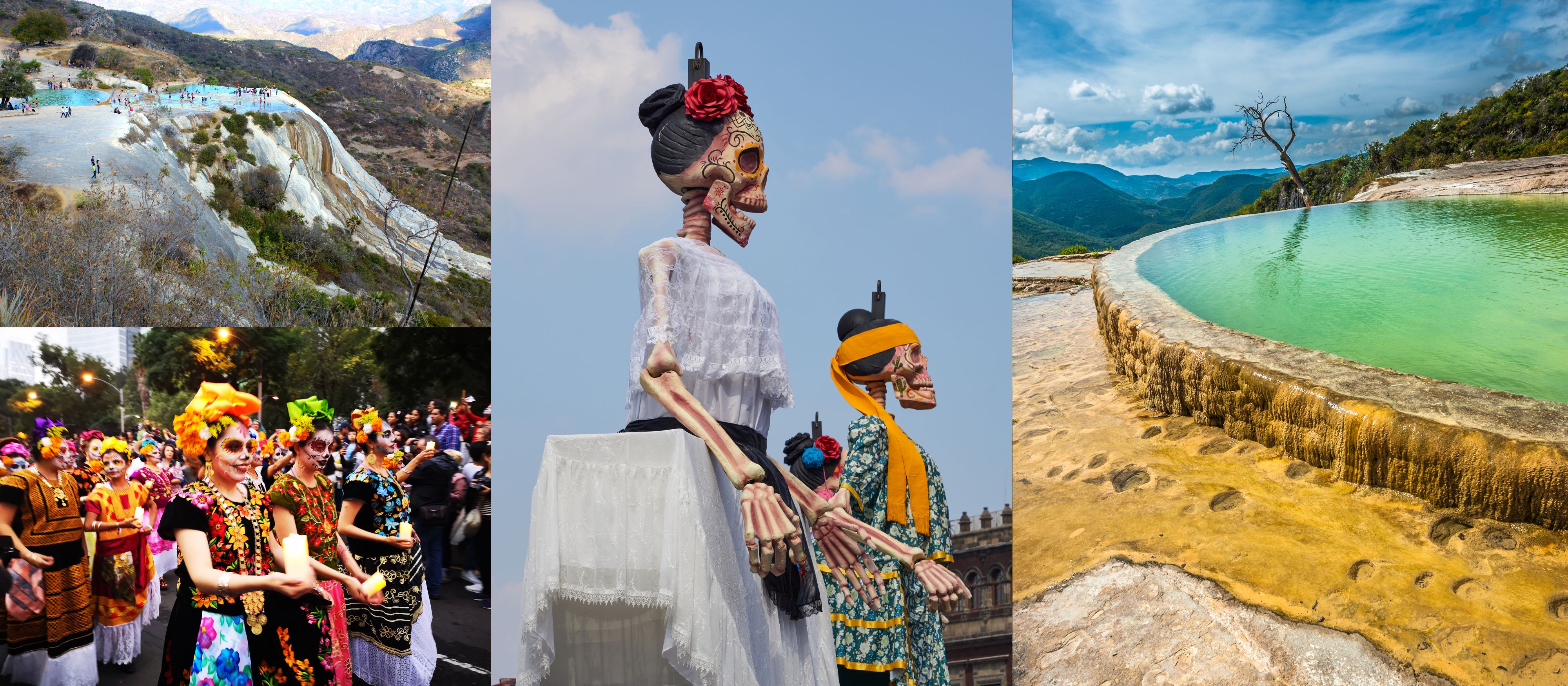 Spend the day experiencing Oaxaca’s Day of the Dead festivities. Attend atmospheric vigils, photograph the boisterous parades, and learn about the spiritual significance of the holiday’s rituals. Opt to travel to Hierve el Agua. This stunning natural formation of mineral pools near the edge of a cliff.
