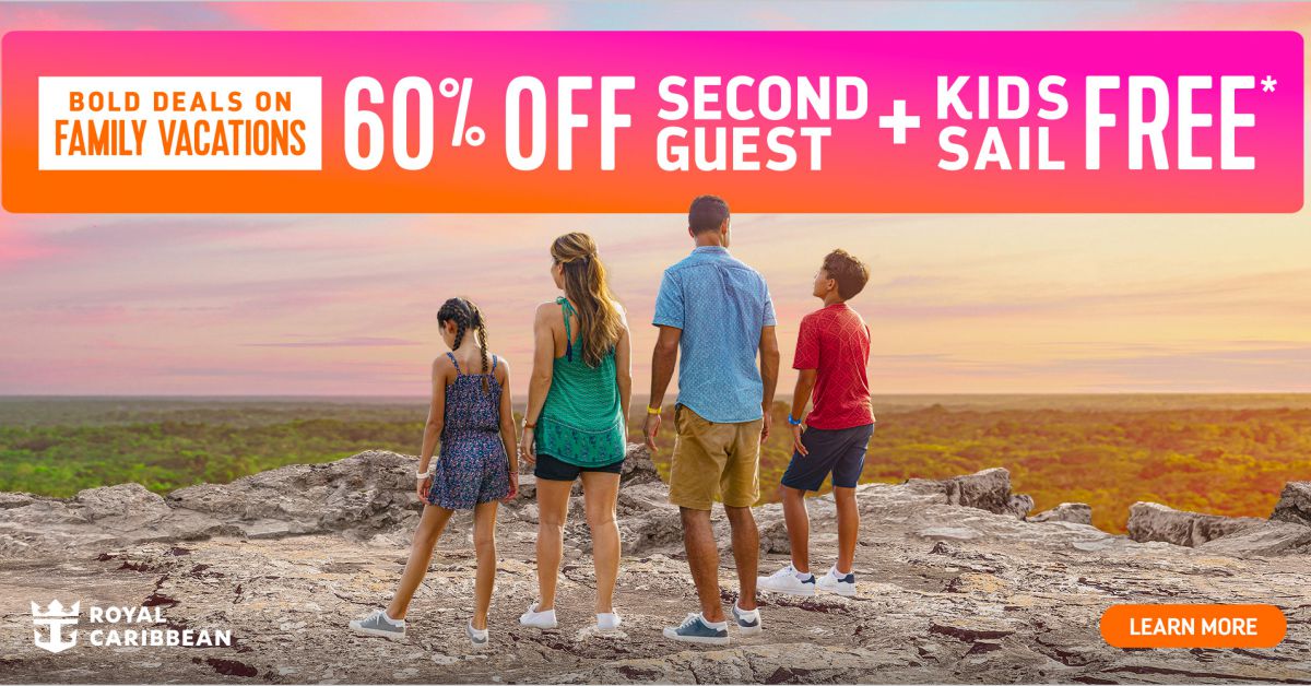 Unwind, explore, and indulge with deals too good to miss. Lounge beneath open skies with a cocktail in hand, dive into nonstop thrills on the top deck, or dance the night away under the stars. And with every journey taking you from iconic landmarks to hidden gems, this is your chance to make the getaway you’ve been waiting for. Right now, score incredible savings — like up to 60% off your second guest. Bring the whole family too — because kids sail free!* Plus, get up to $250 off air travel on select sailings.